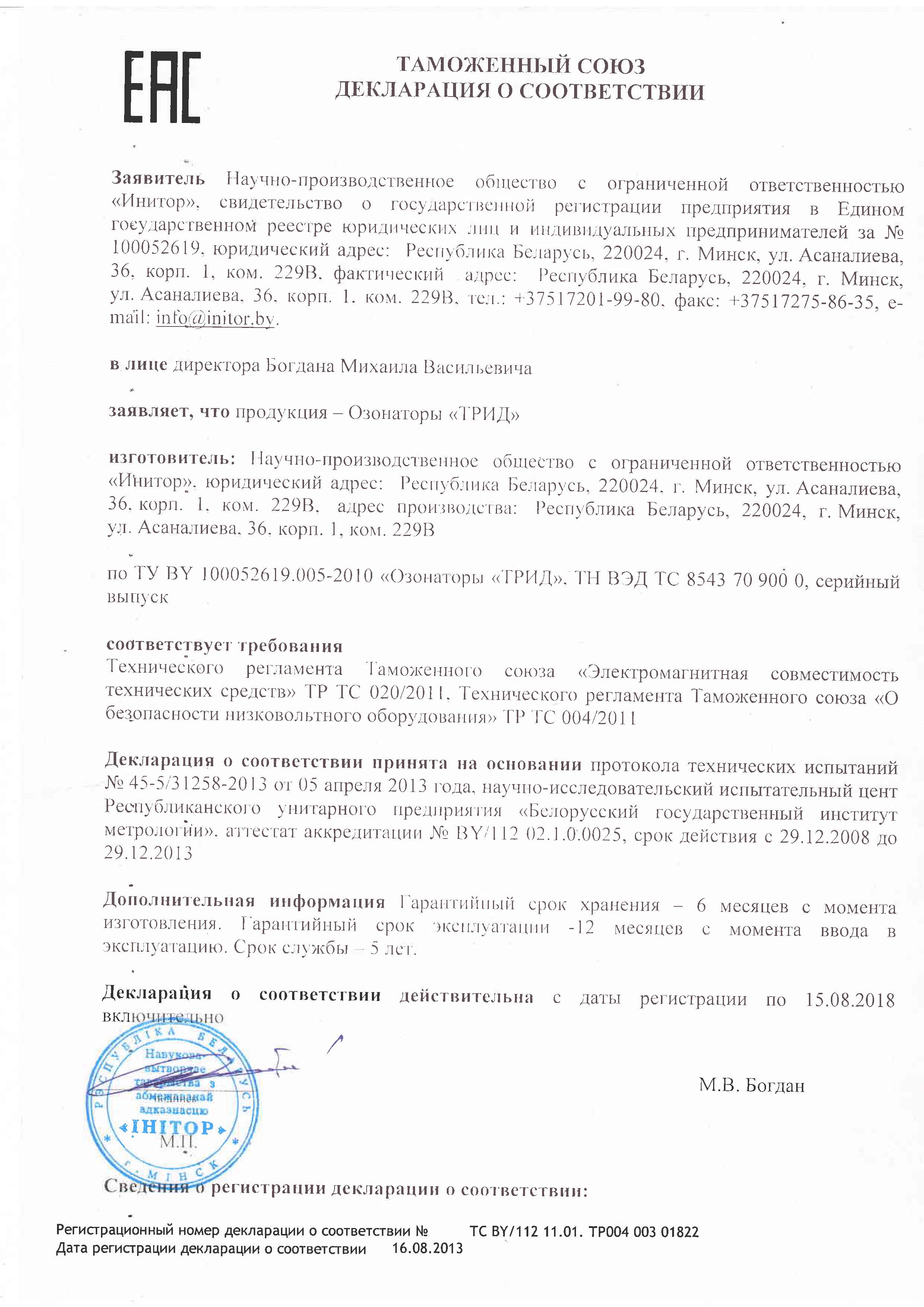 БЕЛОРУССКИЕ ОЗОНАТОРЫ производства НП ООО «ИНИТОР» предназначены для дезинфекции и обеззараживания воздуха в организациях здравоохранения, дератизации, дезинсекции помещений и складов, емкостей, продукции и сырья, оборудования, тары и упаковки, коммуникаций.